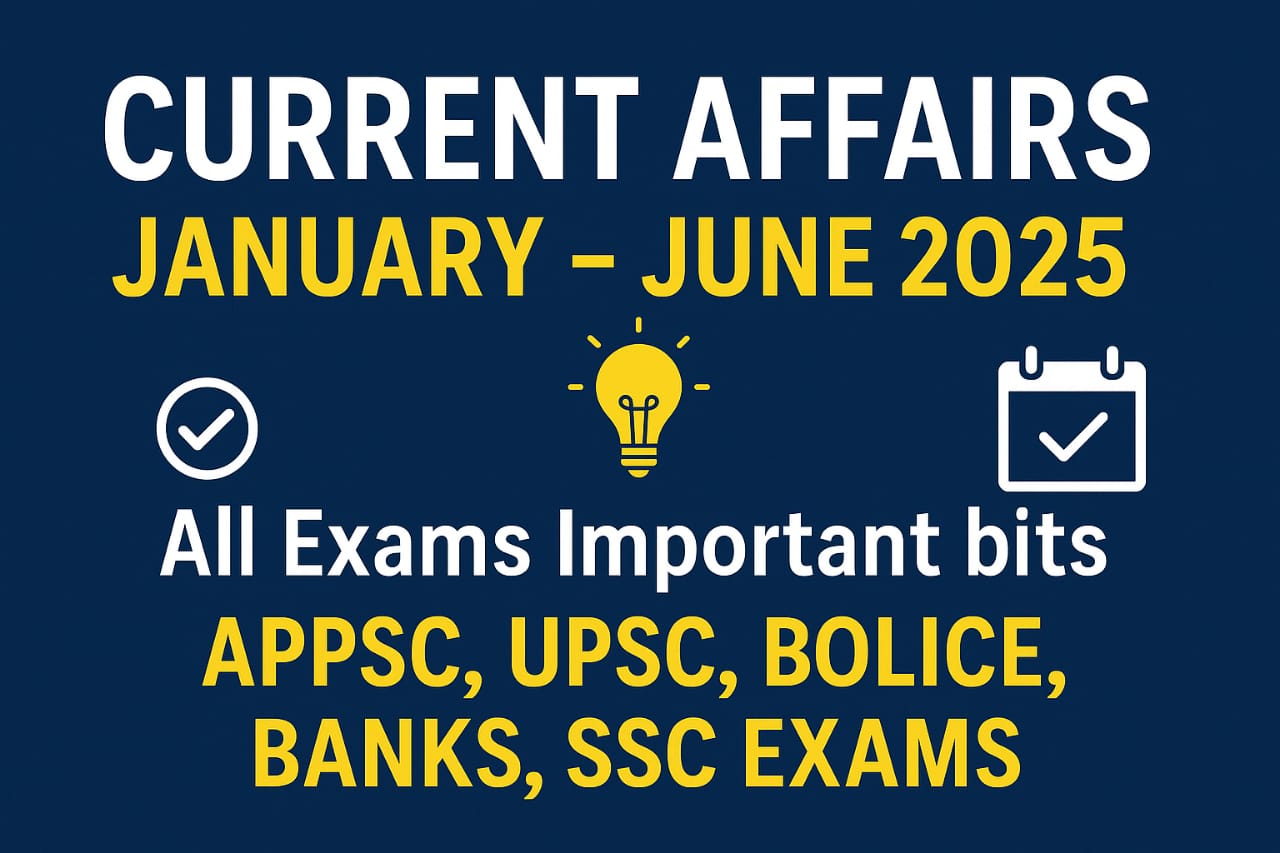 January to June 2025 Current Affairs in Telugu-All Competitive Exams Bits (APPSC,TSPSC,SSC,BANK,POLICE)